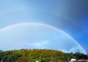 日本でも、梅雨の晴れ間や夏の夕立のあと、西日が差し込むタイミングに出現する確率が高まります。特に空気の澄んだ山間部や海沿いは背景が暗くなりやすく、二次虹がより際立って見えやすい環境です。