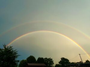 ダブルレインボーとは、ひとつの虹の外側に、もうひとつの淡い虹が並んで現れる現象を指します。